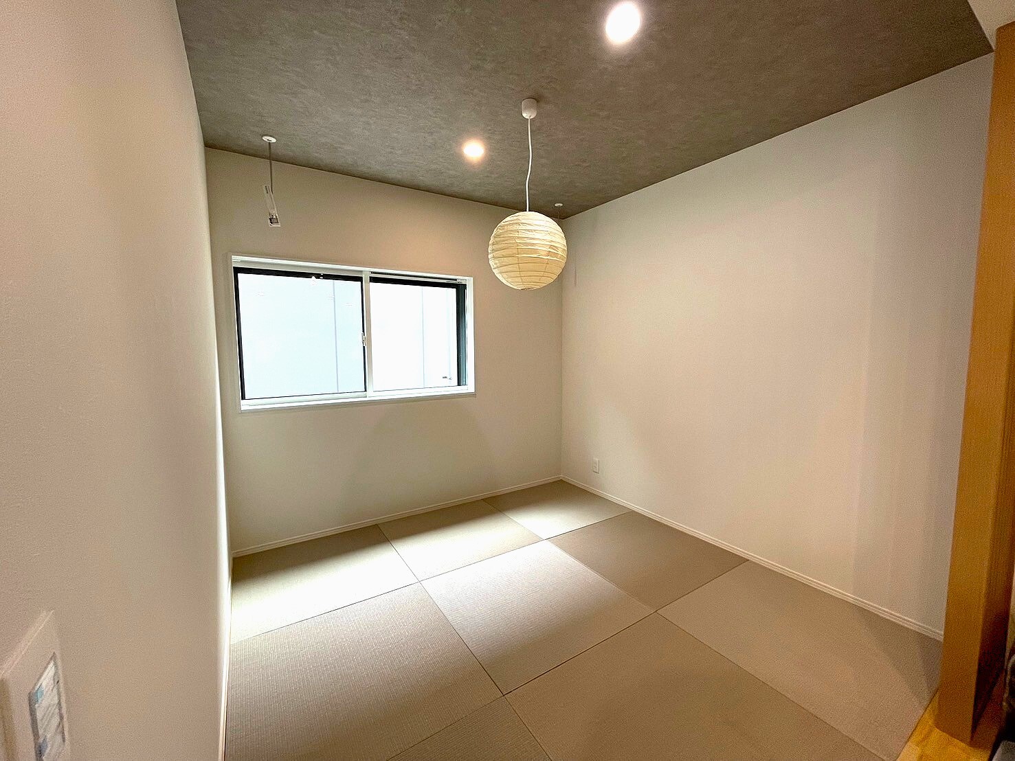 和紙の丸い照明がアクセントに
